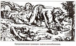 Средневековая гравюра: сцена каннибализма.