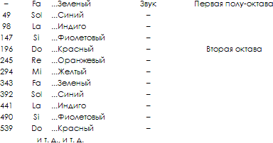 Вторая и четвертая октавы были бы тепловые и актинические лучи, и они невидимы для нашего нынешнего восприятия.