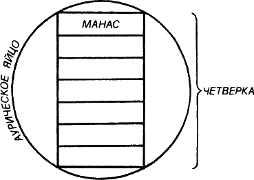 низшая Четверка рассматривается как просто материя, объективная иллюзия, и остается Манас и Аурическое Яйцо, высшие Принципы будучи отраженными в Аурическом Яйце. Во всех этих системах помните о главном принципе – сошествие и новое восхождение Духа, как в человеке, так и в космосе. Дух притягивается книзу как бы духовной гравитацией.