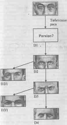 Я сфотографировал ее глаза, а по приезде в Россию провел их офтальмогеометрический анализ. Глаза эти имели ориентировочно такие офтальмогеометрические параметры, что в пути миграции D по степени математического приближения они вставали между тибетской и арменоидной расами.