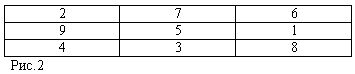 Из древности до нас дошли магические квадраты, суть которых заключалась в том, что сумма цифр как по вертикали, горизонтали и диагонали, представляет из себя одно и то же число. Например, на рис. 2 изображён магический квадрат, сумма чисел которого равна 15: