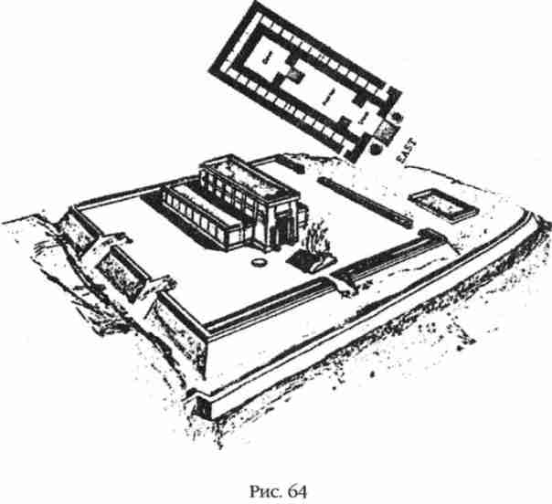Храмы, которые были ориентированы на точки равноденствия, подобно храму Соломона в Иерусалиме (рис. 64) и старой базилике Св. Петра в Риме, были обращены на восток, к точке восхода солнца в день весеннего равноденствия, и не требовали изменения ориентации. Те же храмы, которые были ориентированы на точку солнцестояния, подобно египетским храмам в Фивах и китайскому храму Неба в Пекине, нуждались в периодической переориентации вследствие прецессии — по прошествии столетий точка восхода солнца в день солнцестояния немного сдвигается. Это можно проиллюстрировать на примере Стоунхенджа, где Локьер применил свои открытия (см. рис. 6). Те храмы, которые последователи Ра/Мардука воздвигли для его прославления, демонстрировали, что небеса сомневаются в долговечности бога и его эры.