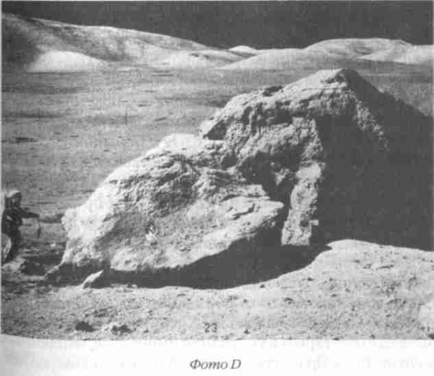 Всего на Луне побывали шесть космических кораблей типа «Аполлон», которые доставили туда двенадцать астронавтов. Последняя экспедиция состоялась в декабре 1972 года. Если цель первого полета человека на Луну состояла в том, чтобы «опередить русских», то по мере развития программы «Аполлон» последующие миссии приобретали все большую научную окраску. Оборудование для проб и экспериментов становилось все более сложным, выбор мест для посадки определялся учеными, исследуемая область расширялась при помощи средств передвижения, а время пребывания на Луне увеличилось с нескольких часов до нескольких дней. Изменился даже состав экипажа — в последней экспедиции принимал участие опытный геолог Харрисон Смит. Его знания были неоценимы при выборе образцов пород, которые следует привезти на Землю, в описании и исследовании лунной пыли и других материалов, а также в описании топографических характеристик ландшафта — холмов, долин, неглубоких каньонов, вертикальных обнажений породы и гигантских валунов (фотография D) — без которых истинное лицо Луны осталось бы загадкой. На Луне были размещены приборы для наблюдения за происходящими процессами в течение длительного времени, а также взяты пробы грунта с большой глубины, но наибольшую радость ученым доставили 838 фунтов лунного грунта и камней, которые были доставлены на Землю. Их исследование и анализ все еще продолжаются — несмотря на то, что прошло уже более двадцати лет после того, как на Луне побывал первый человек.