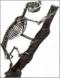 Гигантский свиноголовый лемур с чрезвычайно развитой «рукой», скелет выставлен в Американском музее натуральной истории, Нью-Йорк.