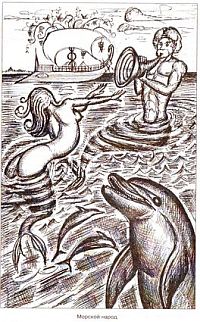 Древнегреческие легенды рассказывают: как-то самого бога вина Диониса похитили кровожадные пираты и стали требовать от него выкуп, угрожая расправой. Никакие увещевания образумиться, сопровождаемые обильными возлияниями и разнообразными кушаньями, не могли задобрить непреклонных пиратов. Дионис, хоть и был нрава миролюбивого, но не стерпел дальнейшего издевательства над собственной персоной и решил сурово наказать обидчиков. По его приказу вино превратилось в виноградную лозу, а виноградная лоза стала расти, пока не обвила весь корабль, мачту и паруса. Объятые ужасом пираты были вынуждены искать спасение в морской воде. Здесь-то и настигла их суровая кара: по велению Диониса их тела превратились в тела дельфинов. Оттого и по сей день, встречая любой корабль, дельфины сопровождают его, высматривая, нет ли на нем Диониса, с тем чтобы он превратил их обратно в людей.