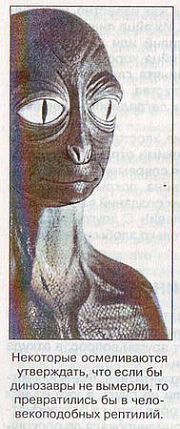 Некоторые осмеливаются утверждать, что если бы динозавры не вымерли, то превратились бы в человекоподобных рептилий.