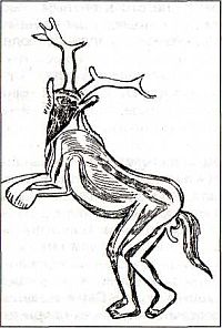 Изображение колдуна, обернувшегося оленем из верхнепалеолитической (12–40 тыс. лет тому назад) пещеры Трёх Братьев, Франция.